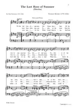 Friedrich von Flotow utiliza la canción para su ópera titulada «Martha», quién es en realidad Lady Harriet haciéndose pasar por una campesina llamada Martha, ella se enamora del agricultor Lionel y, von Flotow pone como cortina musical The Last Rose of Summer. La ópera Martha fue muy popular a mediados del siglo XIX y se especula que fue a causa de la introducción del poema de Moore.[3][1]