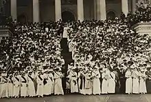 Una famosa representación tuvo lugar en 1912, en la prisión Holloway, después de que muchas activistas fueran encarceladas a raíz de una campaña de rotura de ventanas. La participación de Smyth en esta protesta implicó romper la ventana de Lewis Harcourt, el Secretario de Estado para las Colonias.[8] El director Thomas Beecham visitó a Smyth en la prisión e informó que encontró a las activistas en el patio "...marchando en ronda y cantando lujuriosamente su canto de guerra, mientas la compositora las miraba desde una ventana superior radiante de aprobación, dirigiendo el coro con un cepillo de dientes"