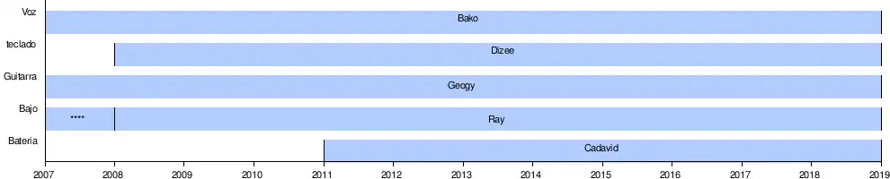 La banda se formó por el vocalista Álvaro Charry y Jorge Luis Bello donde empezaron a crear melodías y canciones, con el tiempo de manera empírica logran acoplar nuevos sonidos y tendencias.[2] Durante ese periodo, se unió Juan David Parra como baterista y sale de la banda Héctor Andrés Muñoz Ramírez. Después de haber tocado con 3 bajistas diferentes se integra César Barajas, David Castiblanco como vocalista segunda voz y con su sonido la banda queda completa.[2]