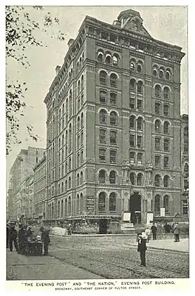 En 1881, el periodista convertido en magnate ferroviario, Henry Villard adquirió The Nation y lo convirtió en un suplemento literario semanal para su periódico The New York Evening Post. Las oficinas de la revista fueron trasladadas a la sede del Evening Post en 210 Broadway.