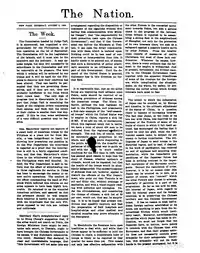 The Nation es la revista semanal más antigua que se publica continuamente en los Estados Unidos, y la revista semanal más leída de noticias, opiniones y análisis políticos y culturales progresistas. Fue fundado el 6 de julio de 1865, como sucesor de The Liberator de William Lloyd Garrison,[2] con la misión declarada de hacer un esfuerzo serio para traer a la discusión de las cuestiones políticas y sociales un espíritu realmente crítico, y hacer la guerra a los vicios de la violencia, la exageración y la tergiversación por los cuales se estropea gran parte de la escritura política del día.[3]