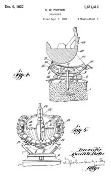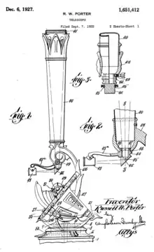Se presentó la solicitud de patente el 25 de enero de 1922 y se le concedió la misma el 25 de septiembre de 1923 bajo nº US1468973.[7] Sin embargo el modelo final difería de dicha patente en la zona de la base, ya que hubo modificaciones posteriores de diseño que fueron recogidas en una nueva patente para una versión de telescopio refractor. Aunque se presentó la solicitud unos meses después de la primera, 7 de septiembre de 1922, se concedió la misma años más tarde, el 6 de diciembre de 1927 bajo nº US1651412[4] pero nunca llegó a fabricarse.