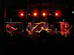 ![]() The Sword durante un concierto en San Francisco (California), en febrero de 2006. De izquierda a derecha: Kyle Shutt, Bryan Richie, Trivett Wingo y J. D. Cronise. | ||