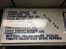 El establecimiento tiene un historial de sátira política en su señalización y publicidad. En marzo de 2016, el restaurante ofreció perritos calientes «Trump footlong» de 3 pulgadas.[11] En junio de 2017, anunciaron «covfefe compatible con el Acuerdo de París».[12] En marzo de 2020, su letrero se burló del indulto de Rod Blagojevich.[13] En 2021, el establecimiento anunció su intención de servir alcohol cuando vuelva a abrir después de haber cerrado debido a la pandemia de COVID-19.[14]