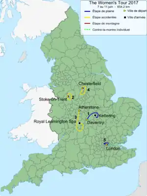 1.ª etapa | 7 de jun | Daventry – Kettering | ![]() etapa llana | 147,5 | ![]() | ![]() |