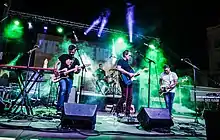-THE YELLOW MELODIES lo forman: Rafa Skam (voz y guitarra); Antonio Clares (bajo y coros), Carlos Abrisqueta (teclados, guitarras y coros) y José Ángel Hernández (batería).