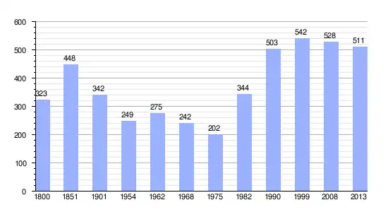 Los datos demográficos contemplados en este gráfico de la comuna de Theil-sur-Vanne[3] se han cogido de 1800 a 1999 de la página francesa EHESS/Cassini, y los demás datos de la página del INSEE.[4]
