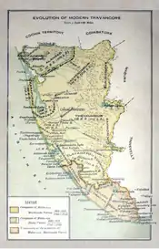 Después de la subyugación de los holandeses por Travancore en 1742, las operaciones militares de Marthanda Varma avanzaron contra los reinos vecinos del norte, incluido Thekkumkoor. Aunque Thekkumkoor se alió con Chempakassery y Vadakkumkoor para proteger el reino, todos ellos finalmente fueron anexados a Travancore.[34]