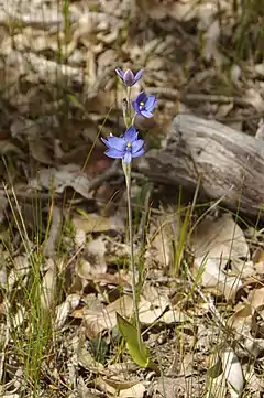 Crece hasta 70 cm de altura y produce flores de color azul entre septiembre y noviembre (primavera) en su territorio nativo.