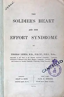 Durante la Primera Guerra Mundial, Lewis trabajó en el Hospital Militar del Corazón en Hampstead y, con la primera dedicación exclusiva a la investigación clínica en Gran Bretaña, en el Comité de Investigación Médica (futuro Consejo de Investigación Médica más tardío). Dirigió un estudio sobre la dolencia entonces llamada "corazón del soldado" y, tras establecer que no era un problema cardíaco, lo rebautizó como "síndrome del esfuerzo".[8] En 1918 escribió la monografía El corazón del Soldado y el Síndrome del Esfuerzo. Inventó ejercicios terapéuticos para los soldados que padecían el síndrome tras su vuelta a la condición civil, siendo nombrado consultor médico honorario del Ministerio de Pensiones en abril de 1919, y Comandante de la Orden del Imperio británico (CBE) en enero de 1920.[14] Fue nombrado caballero entre los nombramientos del cumpleaños de 1921 .[15]