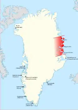 ![]() Ubicación de Tierra de Erik el Rojo | |||||||||||||||||||||||||||||||