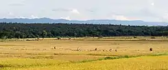 ![]() Cosecha de arroz en el distrito de Wang Nuea, provincia de Lampang. Las montañas del fondo forman parte de la cordillera Phi Pan Nam. | ||