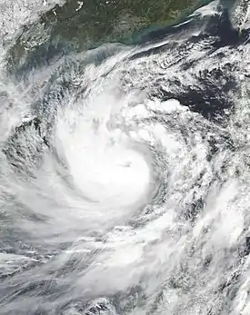 ![]() Vista en la imagen satélite, el tifón Molave cerca de la intensidad máxima el 27 de octubre de 2020 | ||