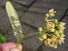 Tilia: nombre genérico que deriva de las palabras griegas: ptilon (= ala), por la característica de las brácteas que facilita la propagación de la fruta por el viento.