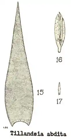 Tillandsia abdita fue descrita por Lyman Bradford Smith y publicado en Phytologia 8: 10, t. 1, f. 15–17. 1961.[1][2][3]