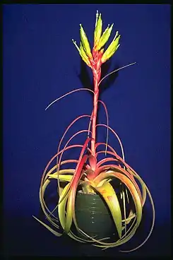 Tillandsia: nombre genérico que fue nombrado por Carlos Linneo en 1738 en honor al médico y botánico finlandés Dr. Elias Tillandz (originalmente Tillander) (1640-1693).