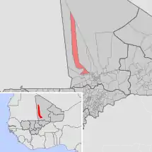 Se encuentra ubicada al norte del país y al oeste de la región de Tombuctú, en la zona de la sabana inundada del delta interior del Níger-Bani, junto a la frontera con Mauritania.