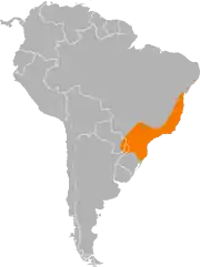 Vive en bosques húmedos de hasta 1.200 msnm; de bosques atlánticos del este de Brasil cerca de Pernambuco a Río Grande del Sur, sur de Mato Grosso, sudeste de Paraguay y extremo nordeste de Argentina.