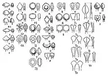 - H. un disco con los bordes biselados . Una de las formas más comunes, que se encuentra a lo largo de los siglos X al XV. H1 es una variante ovalada.