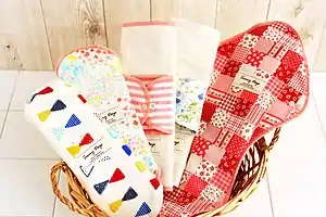 Las toallas o compresas de tela, también llamadas femeninas y ecológicas, son un tipo de toalla sanitaria hecha en tela para absorber la menstruación.[1][2] Se ajustan en la ropa interior y se utilizan por un plazo de entre cuatro y cinco horas. Entre usos, cada una debe lavarse y secarse adecuadamente antes de reutilizar.[3] Junto a copas y la ropa interior absorbente integran el repertorio de insumos reutilizables de gestión menstrual.[4] Pueden confeccionarse en el hogar, o adquirirse directamente a artesanas y pequeños comercios.[5] Para fabricarlas se utilizan distintos textiles, normalmente un núcleo de tela de algodón cubierto de una tela sintética para repeler la humedad. Existen a su vez versiones fabricadas únicamente con algodón.[6][5][7] La vida útil de cada una varía según su confección y cuidados, y puede superar los tres años de uso.[8]