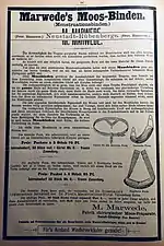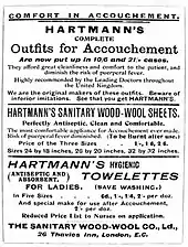 Alrededor de 1895 surgió la marca Curads and Hartmann's, en Alemania. El material absorbente empleado wood wool podría haber sido virutas de madera o bien fibras de rayón. Publicidad de sus toallas se halló en catálogos del Reino Unido y Estados Unidos, lo que constituye el primer antecedente de venta multinacional de este producto.[36] En 1896 Johnson & Johnson lanzó el primer modelo desechable de Estados Unidos, Lister Towel Sanitary Napkins for Ladies, nombrado en honor al médico Joseph Lister. Consistía en una toalla de algodón cubierta por una gasa y derivaba de los kits de maternidad con productos destinados al parto comercializados por la empresa a principios de la década.[37] El precio de los absorbentes manufacturados era elevado y el público en general continuó utilizando los métodos tradicionales.[38]
