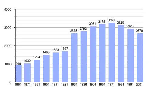 Gráfica de evolución demográfica de Tollegno entre 1861 y 2001 |