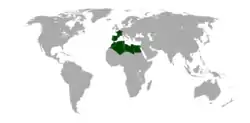 En la zona africana, las poblaciones de Marruecos se sitúan en el Anti-Atlas, en Argelia se encuentra en El-Kantara y en Túnez en Hammamet, entre el nivel del mar y los 1700 metros. En Europa las poblaciones son muy dispersas y sólo se puede encontrar al sur de la cordillera cantábrica, en el centro, sur y este de la península ibérica (esquivando el clima atlántico) y a la costa mediterránea francesa, entre los 300 y los 1300 metros de altitud.[2] Ausente en las Islas Baleares y Andorra.[2] Parece que puede haber fuertes oscilaciones en el número de ejemplares de una población de una temporada a otra, las causas de las cuales son desconocidas.