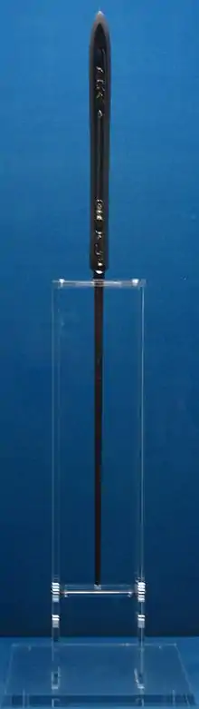El arma, junto con Nihongō y Otegine, figura como una de las "tres grandes lanzas" en el Kyōhō Meibutsucho, una lista de las famosas cuchillas Koto hechas antes del período Nanbokucho y compiladas por la familia Hon'ami durante la era Kyōhō (1716– 1735).[1]