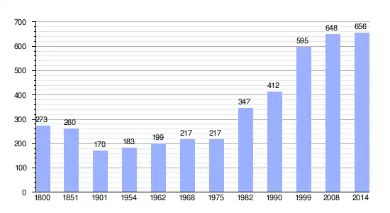 Los datos demográficos contemplados en este gráfico de la comuna de Tonneville[4] se han cogido de 1800 a 1999 de la página francesa EHESS/Cassini, y los demás datos de la página del INSEE.[5]