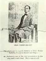 ![]() Tarjeta publicitaria con la imagen de Tony Jackson (alrededor de 1906) | ||