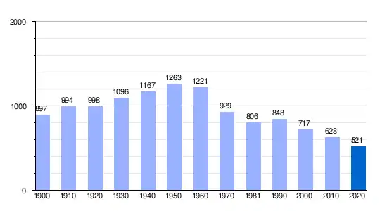 Población de derecho (1900-2010) según los censos de población del INE. Población según el padrón municipal de 2020, datos del INE. |
