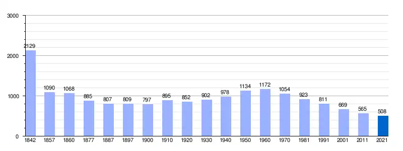 Gráfica de evolución demográfica de Toral de los Guzmanes[4] entre 1842 y 2021 |