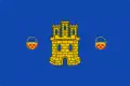 - Bandera: De azur un castillo de oro flaqueado por dos calderas de oro jaqueladas de gules. Forma rectangular y proporción 2:3.