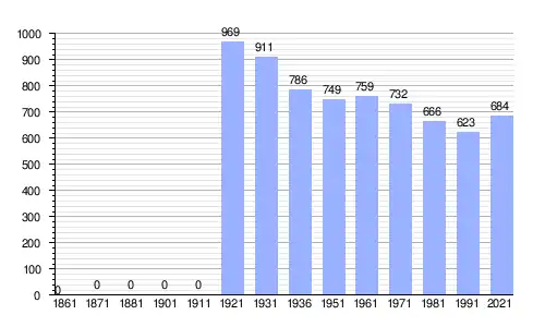 Gráfica de evolución demográfica de Torcegno entre 1861 y 2021 |