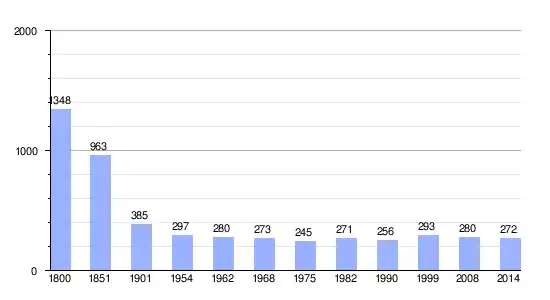 Gráfica de evolución demográfica de Tordouet entre 1800 y 2014 |