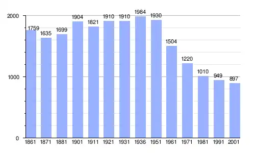 Gráfica de evolución demográfica de Torella del Sannio entre 1861 y 2001 |