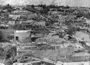 ![]() Una vista panorámica de las manzanas arrasadas por el tornado. | ||
