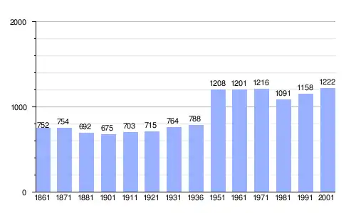 Gráfica de evolución demográfica de Torno entre 1861 y 2001 |