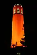 - Coit Tower por la noche, iluminada naranja en reconocimiento a los San Francisco Giants