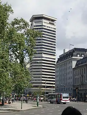 Se ideó una estructura innovadora de pisos suspendidos (excepto en los niveles 12 y 23), con el objetivo de desechar potenciales problemas derivados de las estructuras perimetrales verticales. El núcleo de la torre es triangular, y su base es pentagonal.[2]
