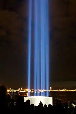 La torre consta de 15 reflectores con prismas que actúan como espejos, reflejando la columna de luz verticalmente, hacia el cielo. A menudo, esta llega a la base de las nubes, que puede llegar a penetrar. En una noche clara, el resplandor puede alcanzar los 4.000 metros de altura.
