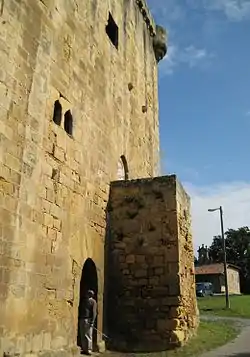 La torre cuenta con tres plantas y en las dos últimas presenta varias hiladas de canes y ménsulas. Está rematada con crestería formada por una doble hilada de ménsulas que sustentan balaustrada horadada por aberturas alternativas, simulando almenado. En los ángulos superiores de la torre se observan cilindros apeados en repisas semicirculares decrecientes.