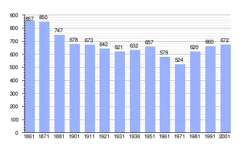 Gráfica de evolución demográfica de Torre San Giorgio entre 1861 y 2001 |