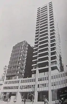 Fue encargada por la Sociedad Militar Seguros de Vida (SMSV) al estudio de los arquitectos José M. Gassó, Martín Meyer y Raúl Rivarola en 1968, con el objetivo de concentrar el local de la aseguradora, departamentos de vivienda y estacionamientos. Comenzó a construirse al año siguiente y se terminó en el año 1971. La empresa constructora fue Eugenio Grasetto S.A.