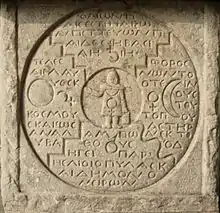 Una segunda cara del cubo incluye una representación de la figura de Telesforo, un enano u homúnculo provisto de una linterna y vistiendo una capa con capucha, rodeado por una inscripción griega: