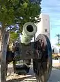 - Cañón, frente a la torre.