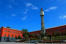 En el extremo superior hay un gorro de forma cónica con una veleta adornado con el emblema comercial de la antigua empresa.[4]