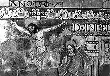 En el interior de la torre hay una cámara, que tiene decoración mural lineal. Son restos de un “Calvario” del que se conserva la parte superior del Cristo y de san Juan. Sobre esta figura quedan restos de una inscripción: “DEINDE DICIT DISCIPVLO ECE...” Otra inscripción había donde estaba la Virgen que ha desaparecido por completo. Sobre el Cristo aparece la fecha 1567. La bóveda está recubierta con pintura que imita casetones renacentistas. Los pisos superiores de la torre tienen distintos sistemas de abovedamiento.