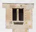 Del sistema de cubrición solo persisten ciertos testimonios en la zona del alero y algún pontón que servía para sostener el entablamento del desván. En la fachada principal, y a ambos lados de la misma, en su parte superior, existen sendos cortafuegos que se apoyan en ménsulas, decoradas con temas perlados, relacionados con el arte gótico, y con cabezas rostradas, dos en un cortafuegos y una en el otro.