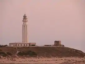 ![]() Torre de Trafalgar (derecha), junto al faro del mismo nombre. | ||